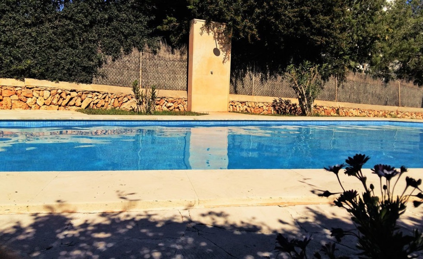 Großzügiger, ruhiger Pool (6x13m) mit Dusche und Garten (über 800 m² ) hinter dem Haus. Gartenliegen und Sonnenschirme.