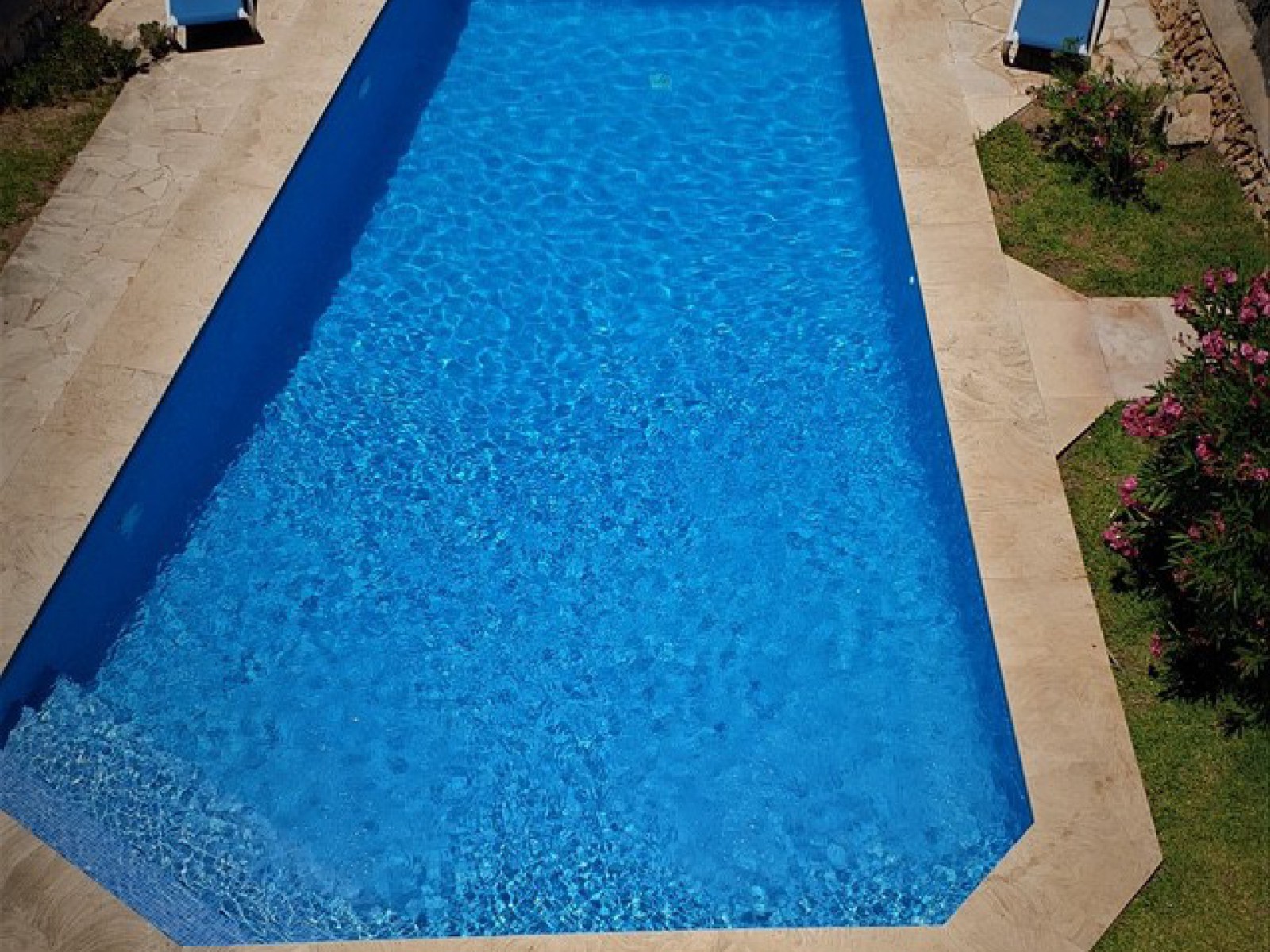 Großzügiger, ruhiger Pool (6x13m) mit Dusche und Garten (über 800 m² ) hinter dem Haus. Gartenliegen und Sonnenschirme.